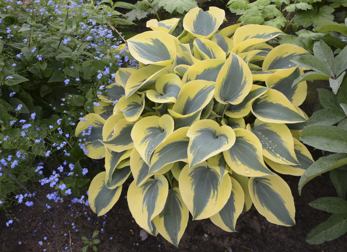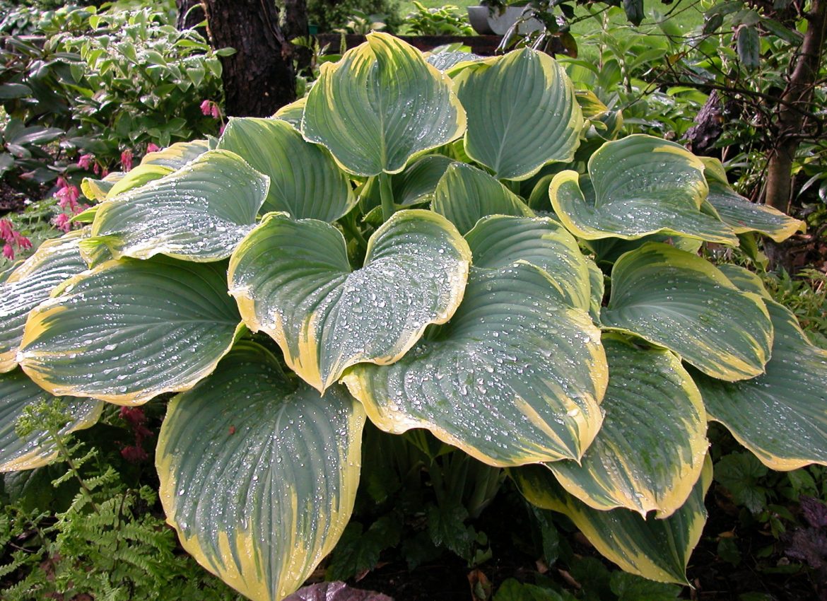 This medium-sized hosta is a showy mound of frosty blue foliage with extra-wide bright yellow edges. Displays creamy-white and lavender-purple flowers in summer. Great as a filler when used in a container garden.