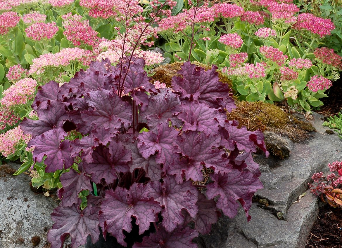 The deep foliage colours on heuchera make a beautiful addition to gardens and containers. As temperatures cool, heuchera foliage colour will brighten or deepen. These perennials are hardy from zone 5-9 and perform well in full shade or partial sun.